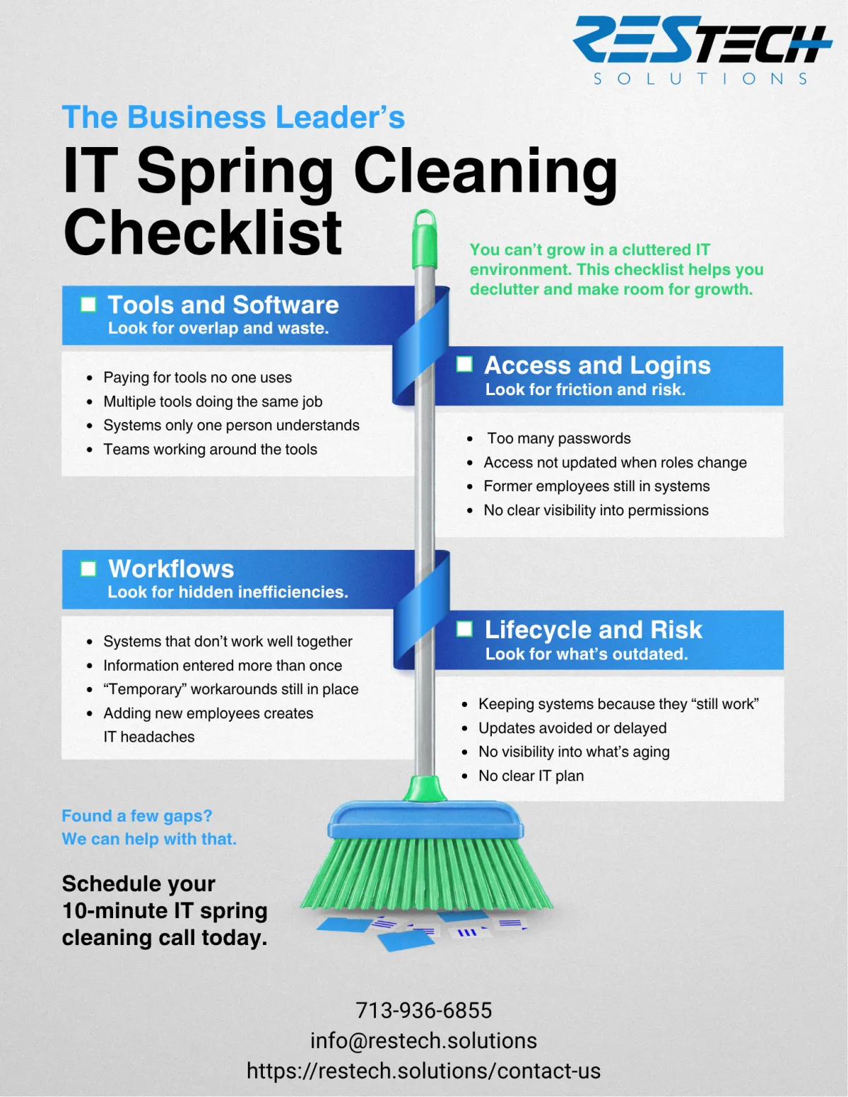 Cluttered, outdated, and unmanaged IT creates hidden friction across your business, slowing productivity, increasing risk, and limiting your ability to scale. By taking a structured approach to decluttering, organizing, and refreshing your technology environment, you can eliminate inefficiencies, reduce exposure to security and compliance issues, and create a more stable, streamlined foundation that supports growth, improves day-to-day operations, and gives you clearer visibility and control over your business systems.